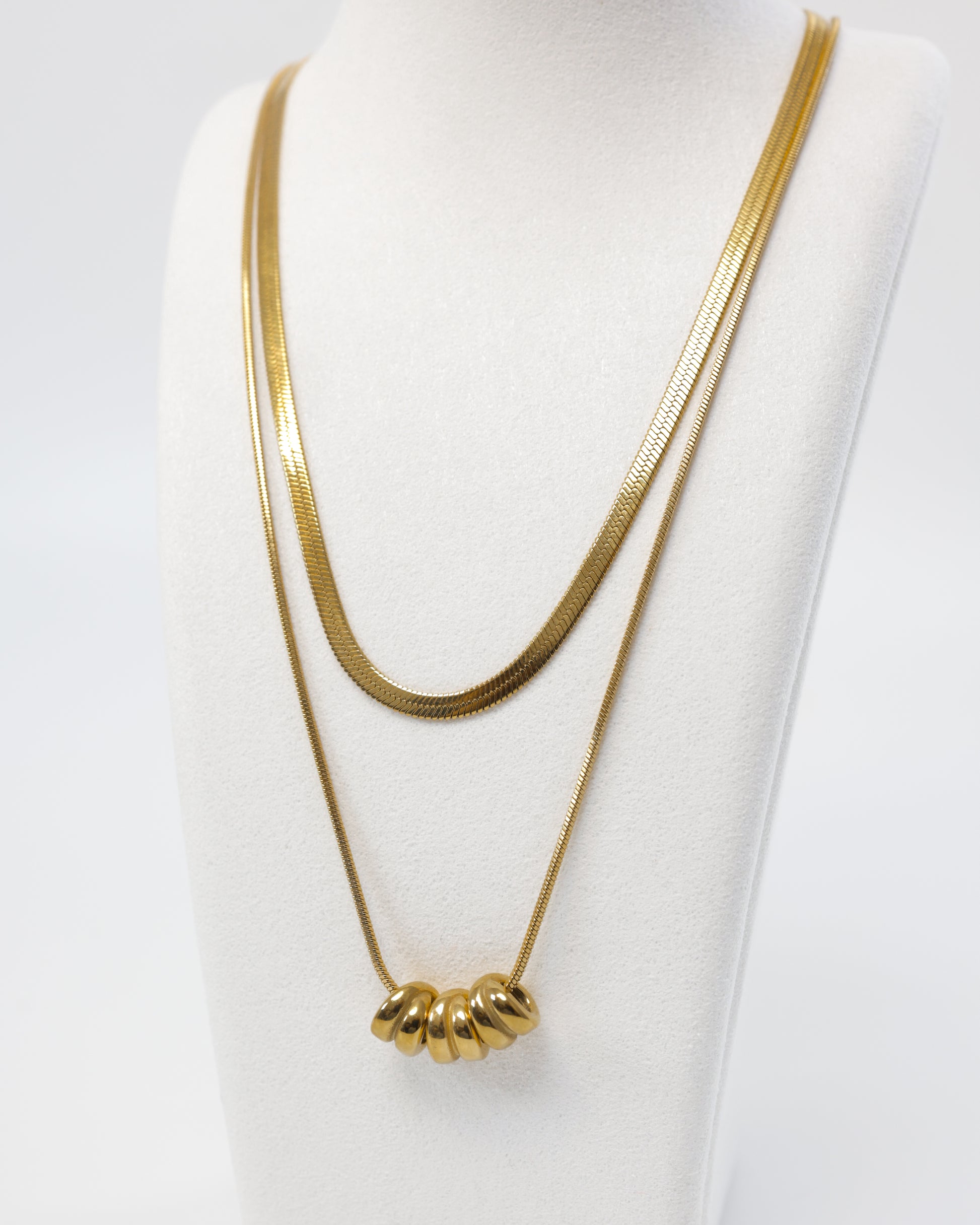 This Two-Tone Stainless Steel Necklace features a chic layered blade chain with a sleek gold and silver finish for a modern, elegant look. Its minimalist bead pendant adds subtle sophistication, perfect for both casual and formal occasions. Crafted from durable, hypoallergenic stainless steel, this trendy piece offers lasting shine and effortless style.