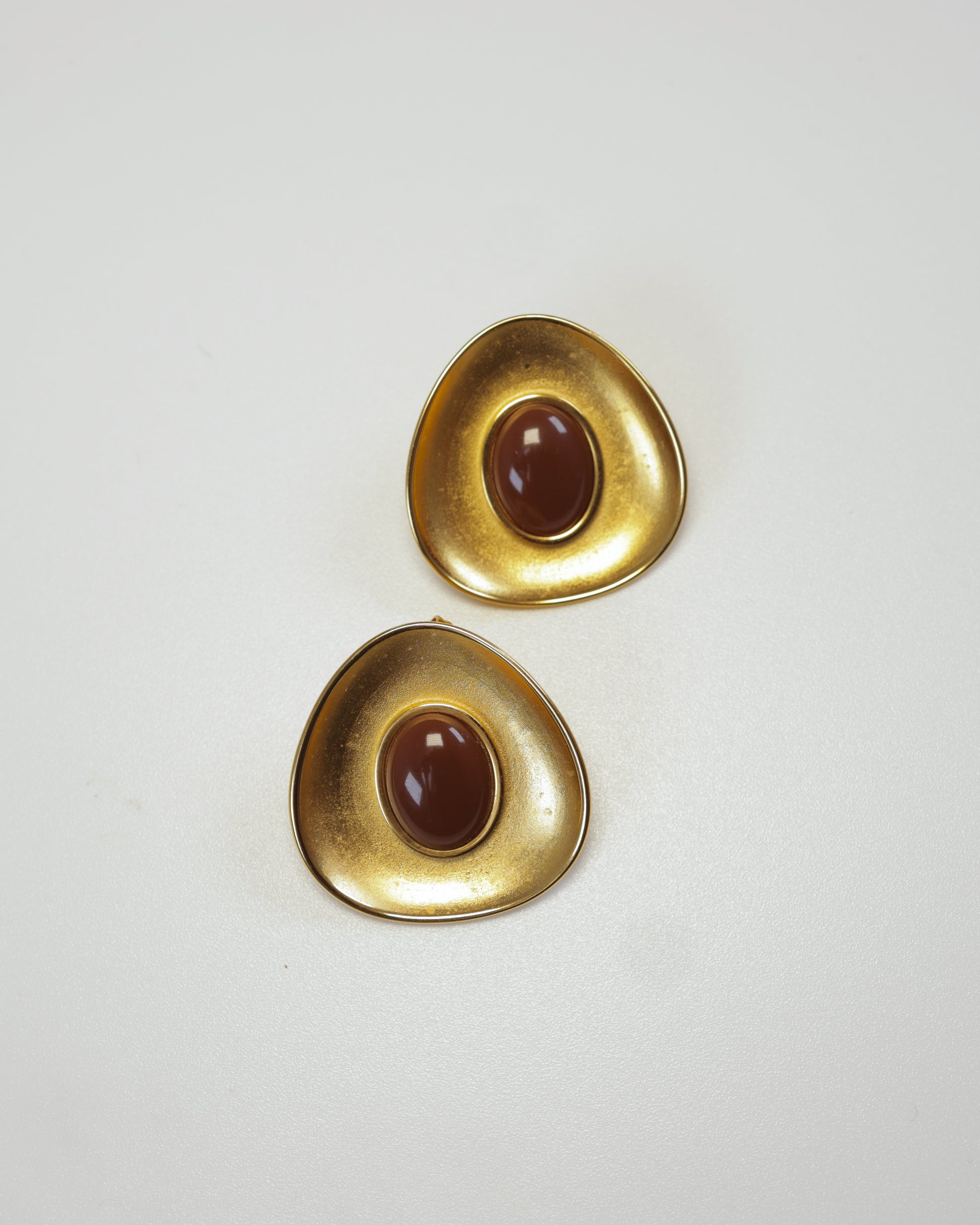 18k Gold Stainless Steel Concave Earring with brown detailing